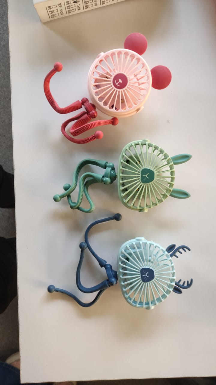 مروحة صغيرة على شكل أخطبوط 2.5 واط ببطارية 600 مللي أمبير. عملية بتلات سرعات وتصميم بتلات أطراف تشبه أطراف الأخطبوط بتساعد في تثبيتها بأكتر من شكل، بتنتج هواء قوي وحجمها صغير بوزن خفيف، بتشتغل بشكل وايرلس بعد الشحن وتقدر تتحرك بيها في كل مكان بكل سهولة.