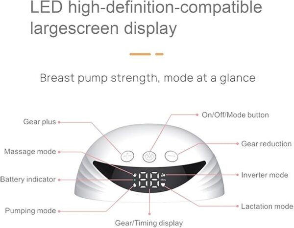 • تأتي بشاشة LED مدمجة تعرض الوقت والإعدادات بوضوح، مما يتيح لك متابعة جلسات الشفط بسهولة ودقة.