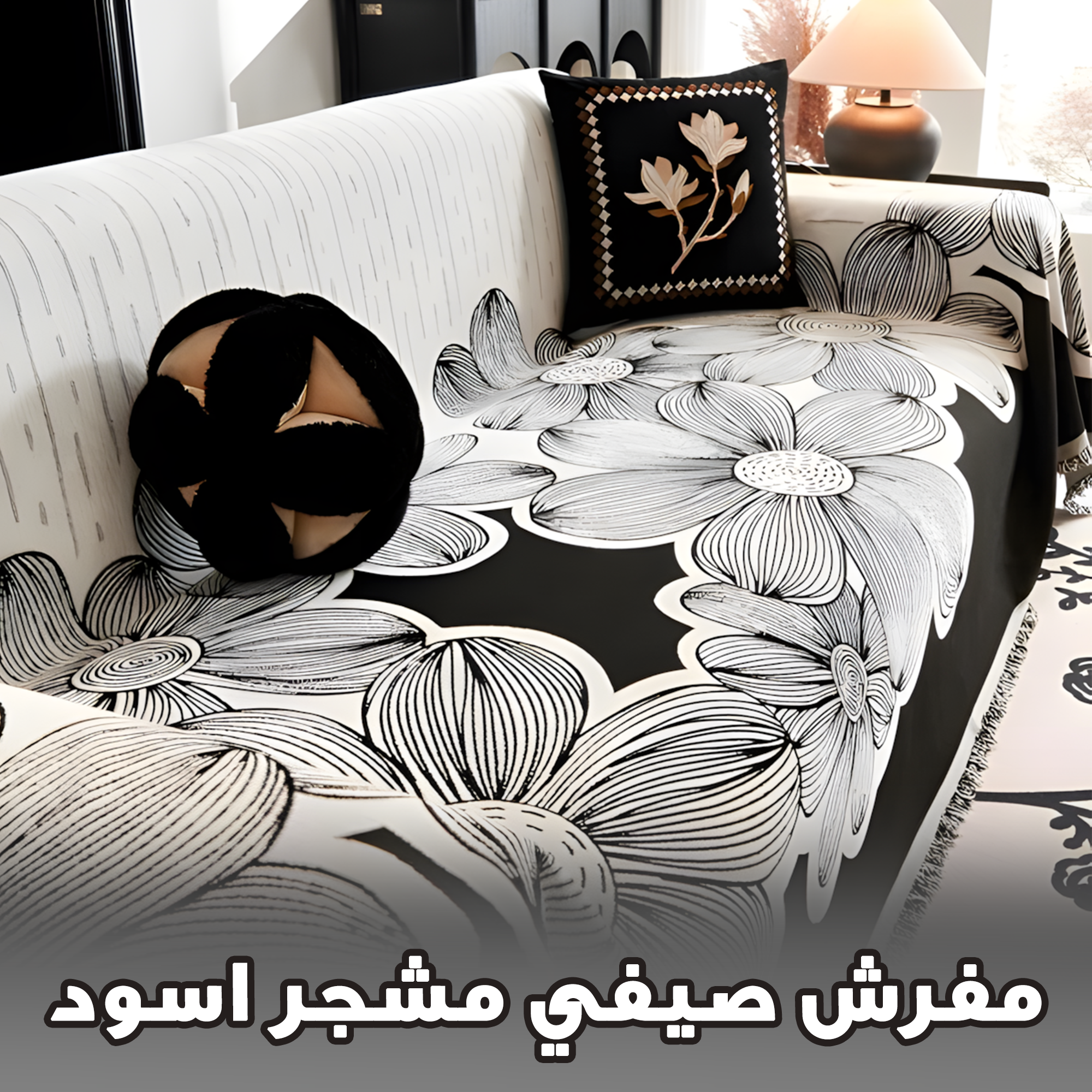 جددي ديكورك بخطوة بسيطة! مفرش صيفي مشجر أسود أنيق بخامة شانيليا ناعمة يغير شكل القعدة ويضيف جو دافي ومميز 🌿🤍