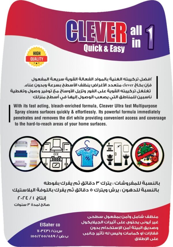 هتحافظي على كل الأسطح بتلمع بأقل مجهود مع منظف Clever الجبار , الحقي اشترية قبل نفاذ الكمية.