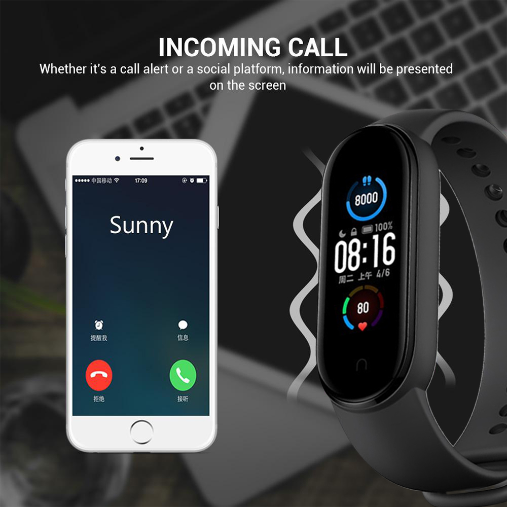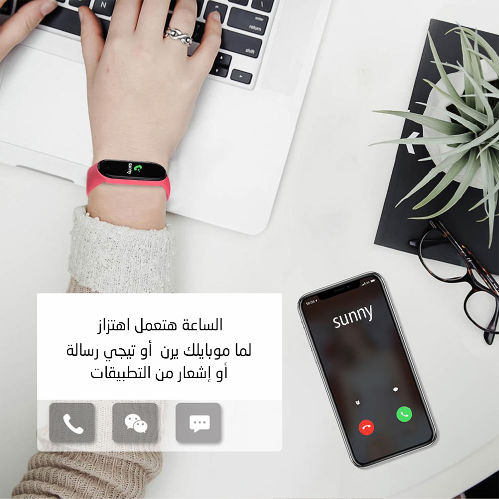 ساعة M5 Sports Bracelet بتتوصل بالموبايل بسهولة عن طريق البلوتوث، بتقيس نبض القلب و بتعرف نسبة الأكسجين في الدم، حساب السعرات الحرارية وقت المشي والرياضة.