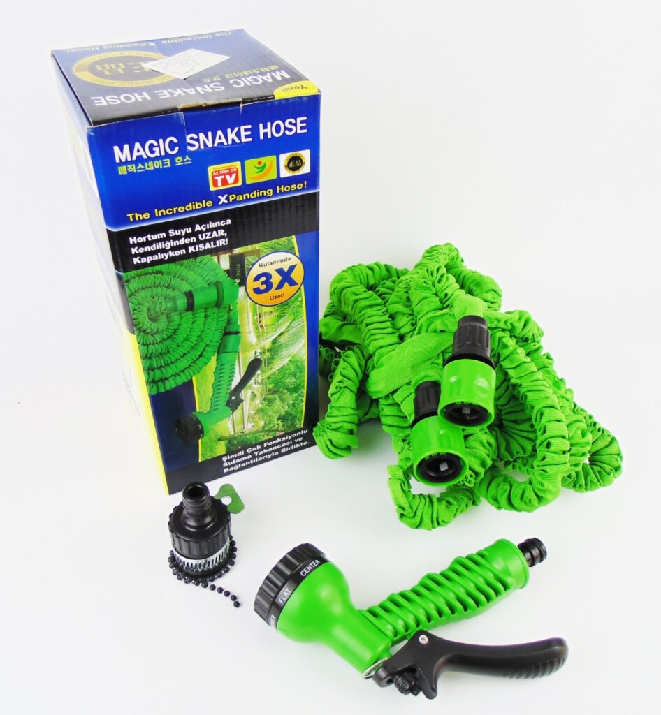 خرطوم مياه مطاطي – يتمدد حتى 3 أضعاف حجمه – يعطي طول عند الإستخدام 22.5 متر – يعمل بضغط الماء له قدره عاليه لتحمل الضغط – خفيف الوزن و سهل الحمل – مصنوع من طبقتين من المطاط بجوده عالية – يحتوي على مسدس للتحكم في تدفق المياه – يغطي جميع الإستخدامات – سهل الإستخدام و التخزين – الأبعاد (الطول 24 سم العرض 24 سم)