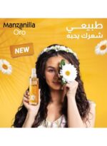 لوسيون تفتيح الشعر Manzanilla Oro بيفتح الشعر تدريجيًا بشكل طبيعي وآمن، بدون أي مواد كيميائية مضرة، وبيسيب الشعر لامع وناعم بفضل زيت الأرجان والكيراتين.