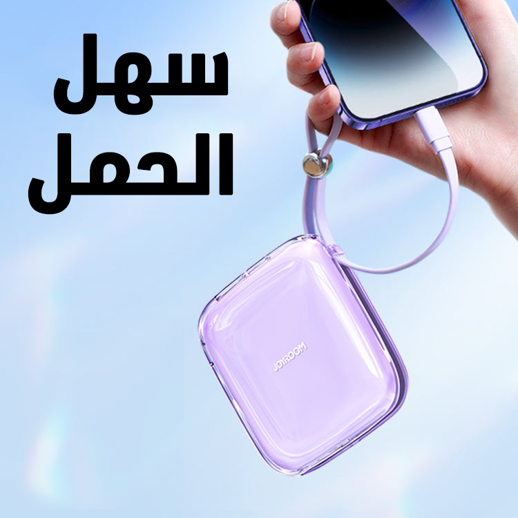 • كابل لايتنينج مدمج: مش هتحتاج تحمل كابل إضافي، الكابل موجود جوه الباور بانك نفسه.