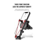 مش محتاج تبص أو تركّز، الحامل بيشتغل بالجاذبية، يعني تحط الموبايل ينزل لوحده ويتثبت، تشيله يرجع تاني لوضعه الطبيعي… سهل جدًا.