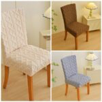 ✔️ غطا الكرسي من قماش الجاكار الخامة مرنة وعالية الجودة، بتدي شكل شيك وتحافظ على الكراسي في نفس الوقت.