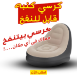 “دلوقتي تقدر تسترخي براحتك في أي مكان مع الكرسي القابل للنفخ! سهل النفخ، مريح، وخفيف، هيكون رفيقك المثالي في البيت، الرحلات، والبلكونة! 🎈✨”– الراحة في أي مكان بكل سهولة! 💨
