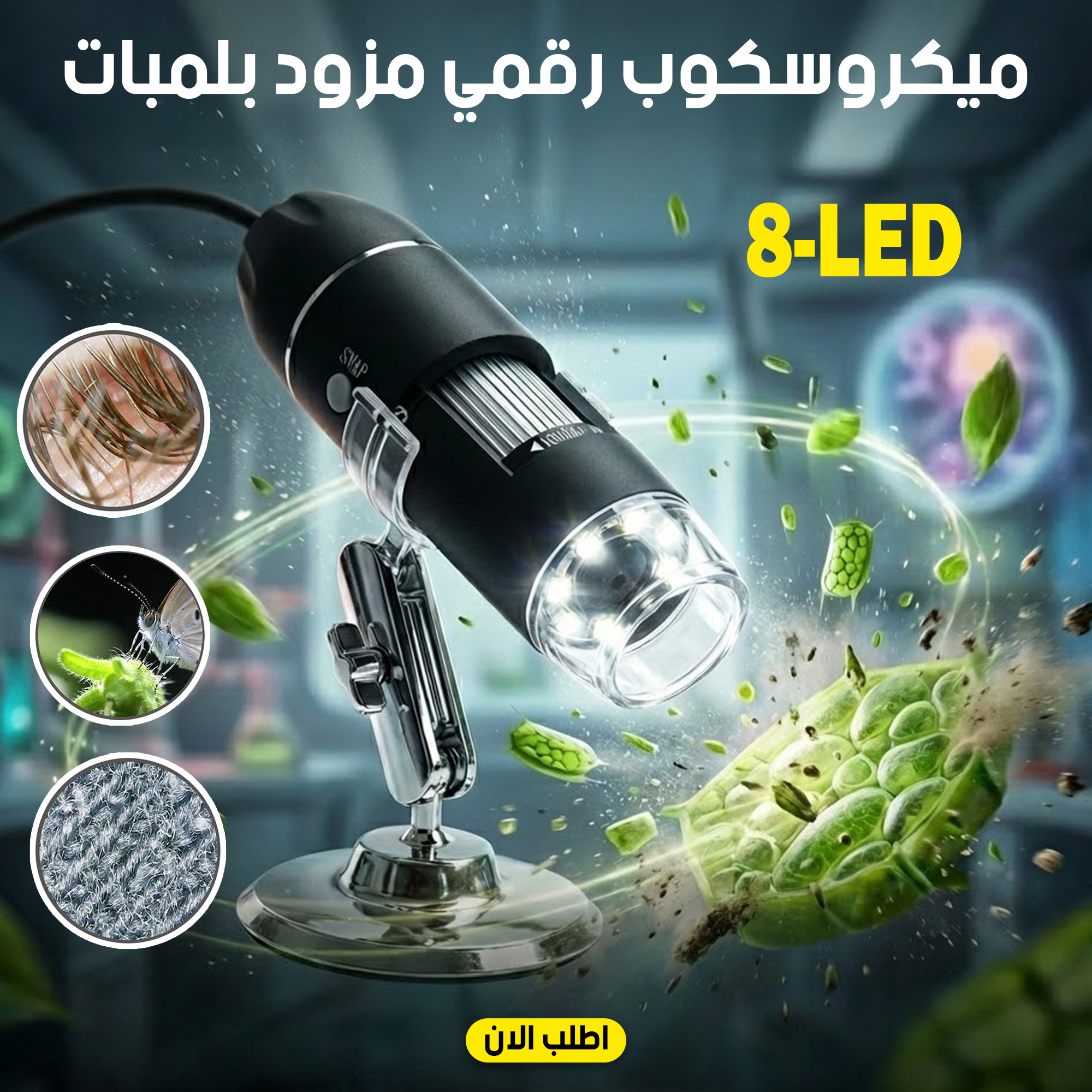 ميكروسكوب رقمي USB بلمبات LED، بيكبر الحاجات الصغيرة 1600× وتشوفها بأوضح شكل ممكن.