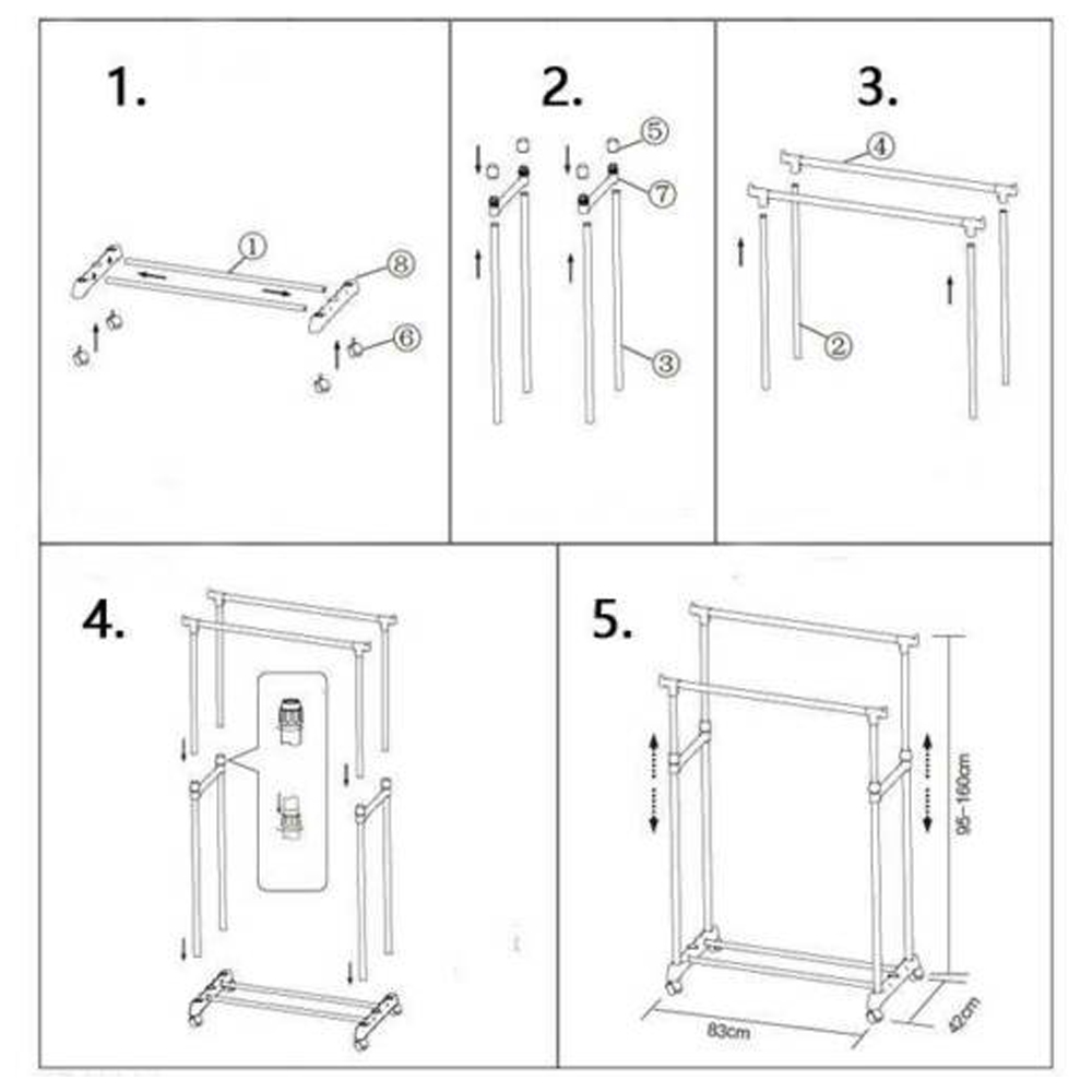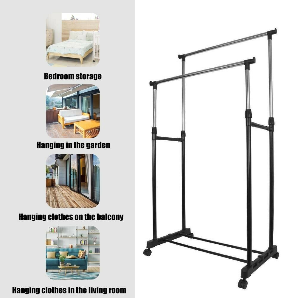 استاند ملابس زوجي – قابل للتعديل من 95 ل 160 سم – و عرض من 88 ل 158 سم – و عمق 40سم وزن تقيل – و مواسير استانلس قوية – عالي الجودة