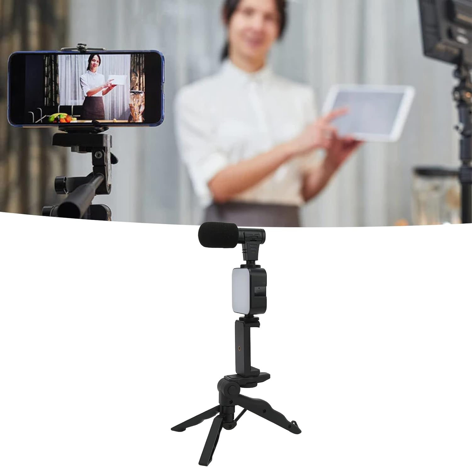 🎥📱 ترايبود بكامله استوديو متنقل! فلاش 🔦 + ميك 🎙️ + ريموت بلوتوث ، وكل اللي محتاجه علشان تطلع فيديوهات برو!