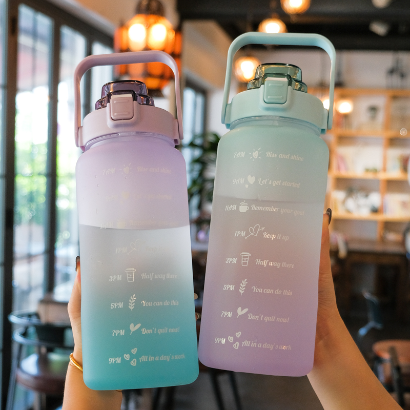 الماية مهمة في يومنا ومفيدة لبشرتنا بس بننسى نشرب طول اليوم وده بيأثر على صحتنا، عشان كدة لازم يبقي معاك دايمًا زجاجة الماية 2000 مل عليها رسومات وجمل شكلها حلو هتشجعك وتفكرك تشرب ماية كتير، خليها معاك في الجيم، الشغل، النادي وأي مكان.