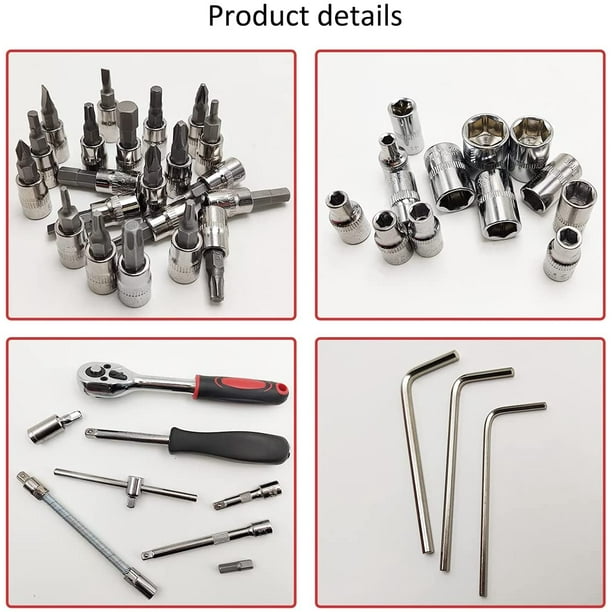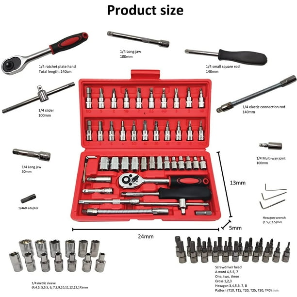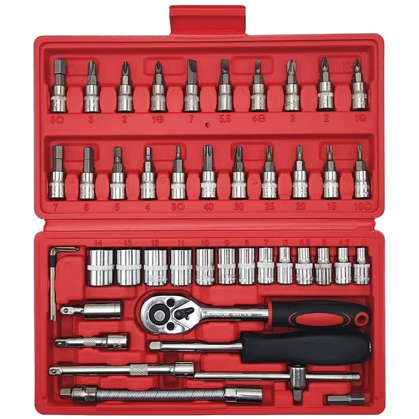 • بيحتوي على مفتاح راتشيت، مجموعة سوكيتات متعددة المقاسات، ومجموعة أدوات إضافية تساعدك في كل شغل الصيانة، سواء في البيت أو الورشة.