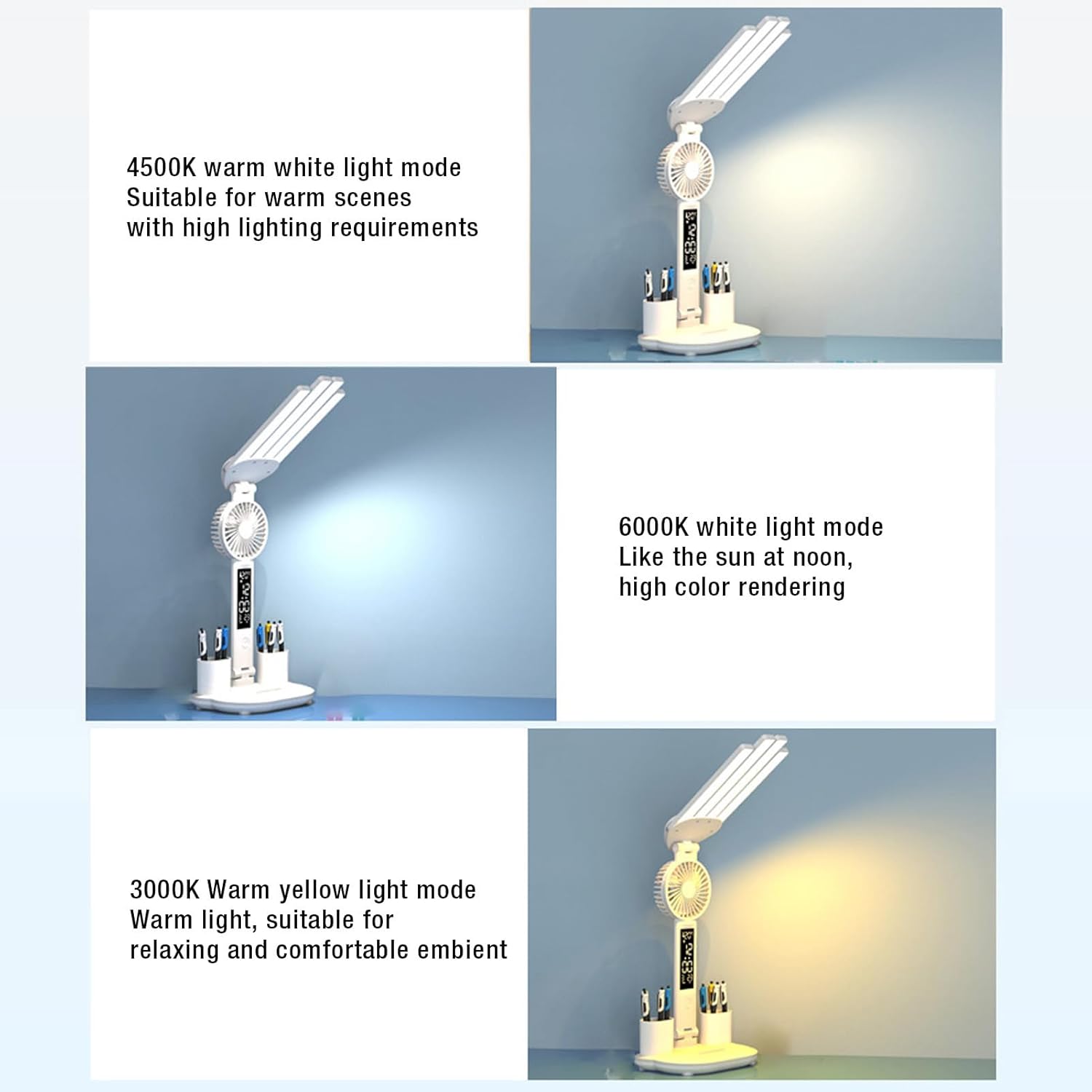 💡✨ أباجورة مكتب LED بـ مروحة وساعة – كل اللي محتاجه على مكتبك في جهاز واحد! ⏰🌀✏️