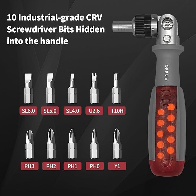 مفك بسقاطة 10 في 1 يحتوي على كل رؤوس المفكات اللي ممكن تحتاجها في أي شغل.