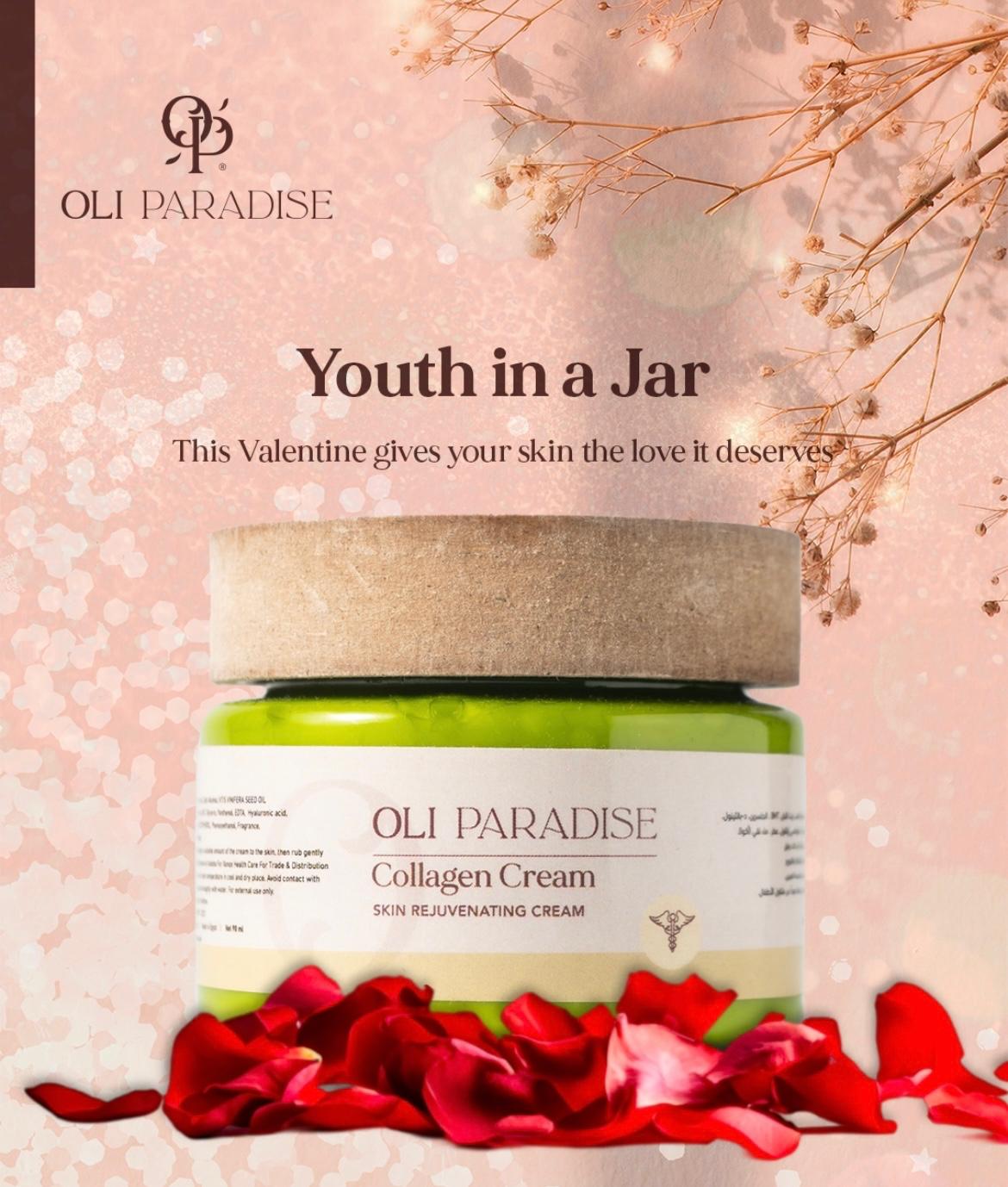 ودّعي التجاعيد والبهتان واستقبلي بشرة مشدودة، ناعمة، ونضرة مع أولي باراديس كولاجين! تركيبة ثورية غنية بالكولاجين البحري (100% طبيعي وآمن) وزيت اللبان الدكر وحمض الهيالورونيك وأهم الزيوت الطبيعية، هتمنح بشرتك glow طبيعي وترطيب فائق من أول أسبوع  . العبوة شيك وتصميمها Premium يليق بجمالك، والفورمولا non-greasy وسريعة الامتصاص علشان تستخدميها صباحًا ومساءً بدون أي إحساس دهني. مناسب لكل أنواع البشرة، وعُنصر الجمال اللي هيرجع لبشرتك شباب