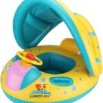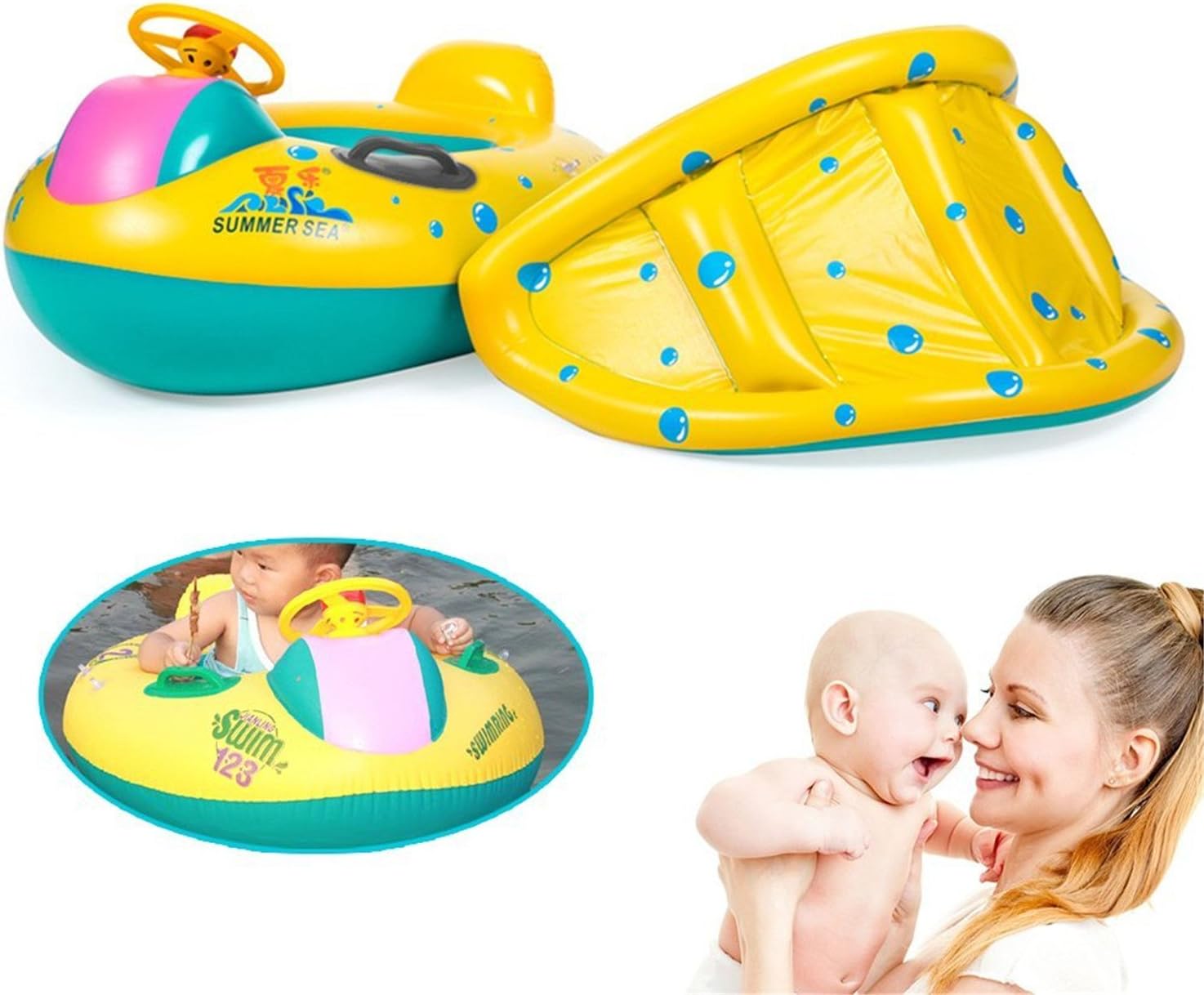 مزود بغطاء شمس خفيف علشان تحمي الطفل من أشعة الشمس أثناء اللعب في حمام السباحة أو على البحر.