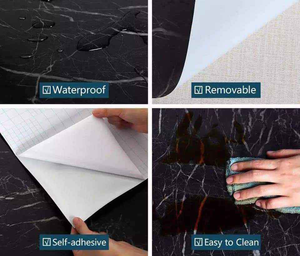 • رول استيكر ماربيلا أسود ماربيلا رخامي عالى الجودة، عملي وبيضيف لمسة من الأناقة بلونه الأسود الفخم. مضاد للمياه والحرارة سهل الاستخدام وبيتميز بلاصق قوي بيدوم لفترة طويلة.