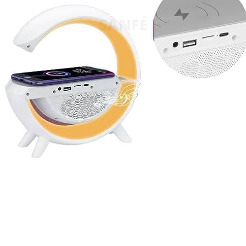 • ” اشحن تليفونك بسهولة وبسرعة مع الشاحن اللاسلكي المدمج، وكمان هتستمتع بنوم هادئ من غير قلق من البطارية. + ألوان الي فيه هتخلي شكل الأوضة حلو” + أنك تقدر تشغل عليه أغاني كمان مستني أيه اطلبه حالاً .