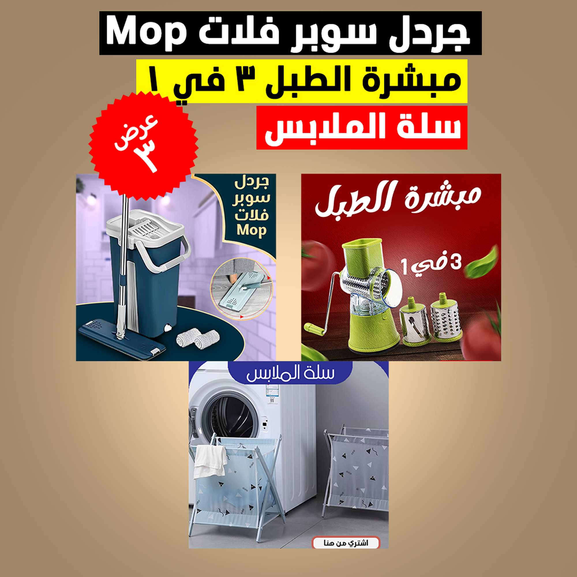 • عرض النظافة عشان جبنالك جردل سوبر فلات Mop+ مبشرة الطبل 3 في 1+ سلة الملابس