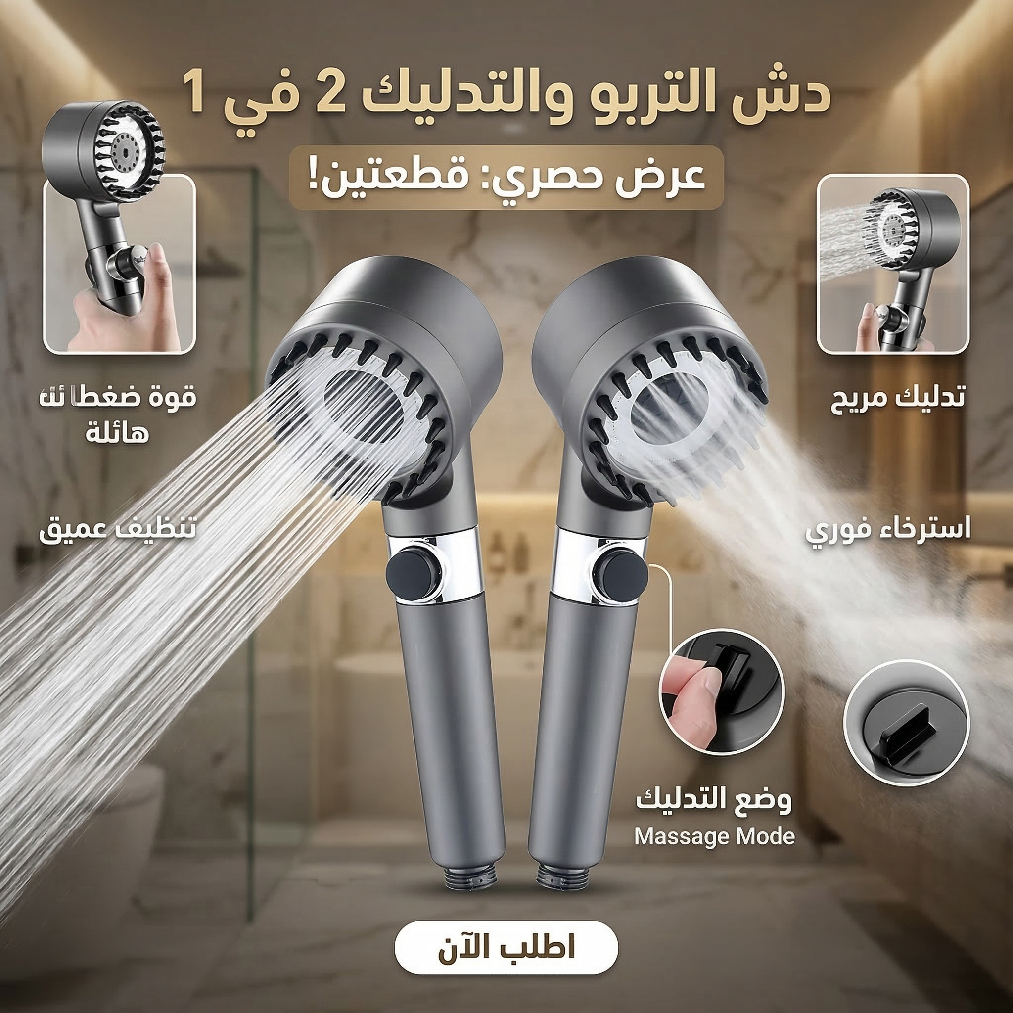 🚿 النوع: دش تربو تدليك 2 في 1