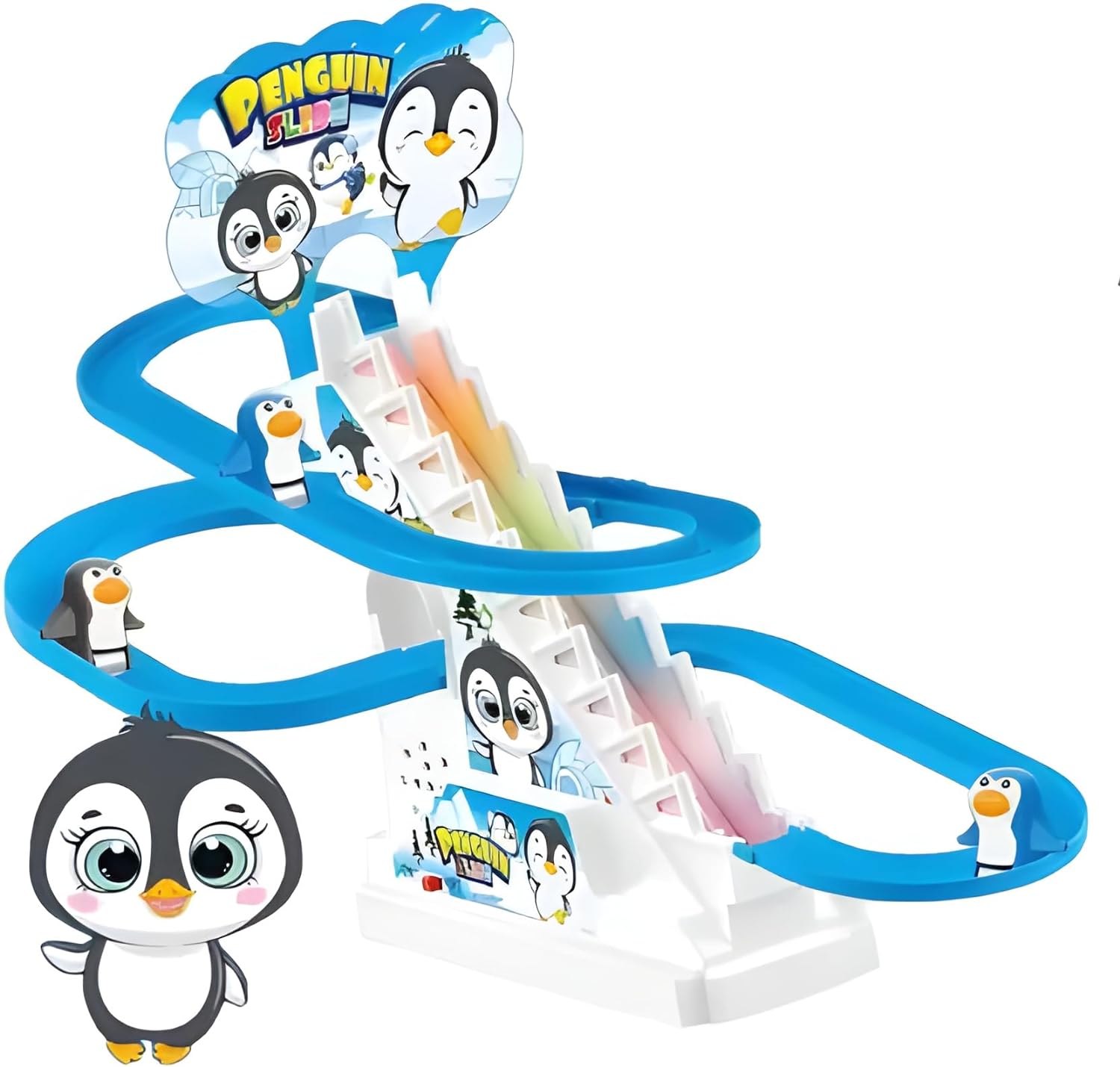 • البطاريق بتتحرك وتطلع السلم وتتزحلق في حركة مستمرة هتخلي ابنك مبسوط وميقدرش يتحرك من قدامها