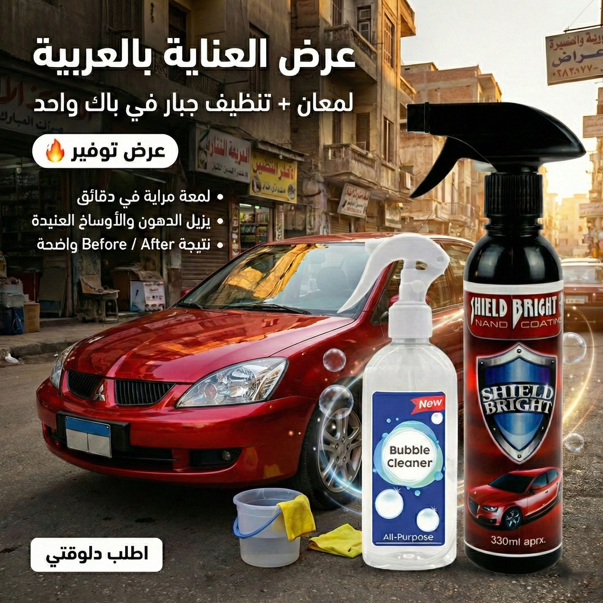 عرض ملمع السيارة Shield Bright+اسبراي التنظيف الجبار Multipurpose Bubble Cleaner