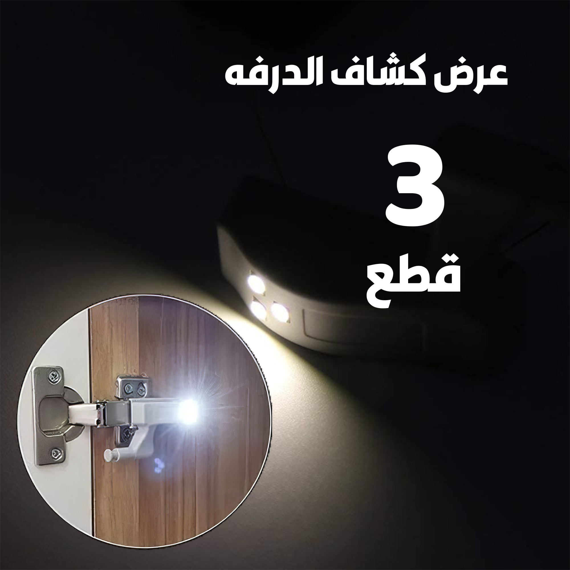 • هتفتحي دواليب المطبخ والهدوم من غير ما تحتاجي تنوري النور الكبير مع عرض 3 قطع كشاف الدرفة اللي هتحطيه مع مفاصل الدولاب ومع كل مرة تفتحي هينورلك بإضاءة قوية، الحقي اشترية قبل الكمية ما تخلص.