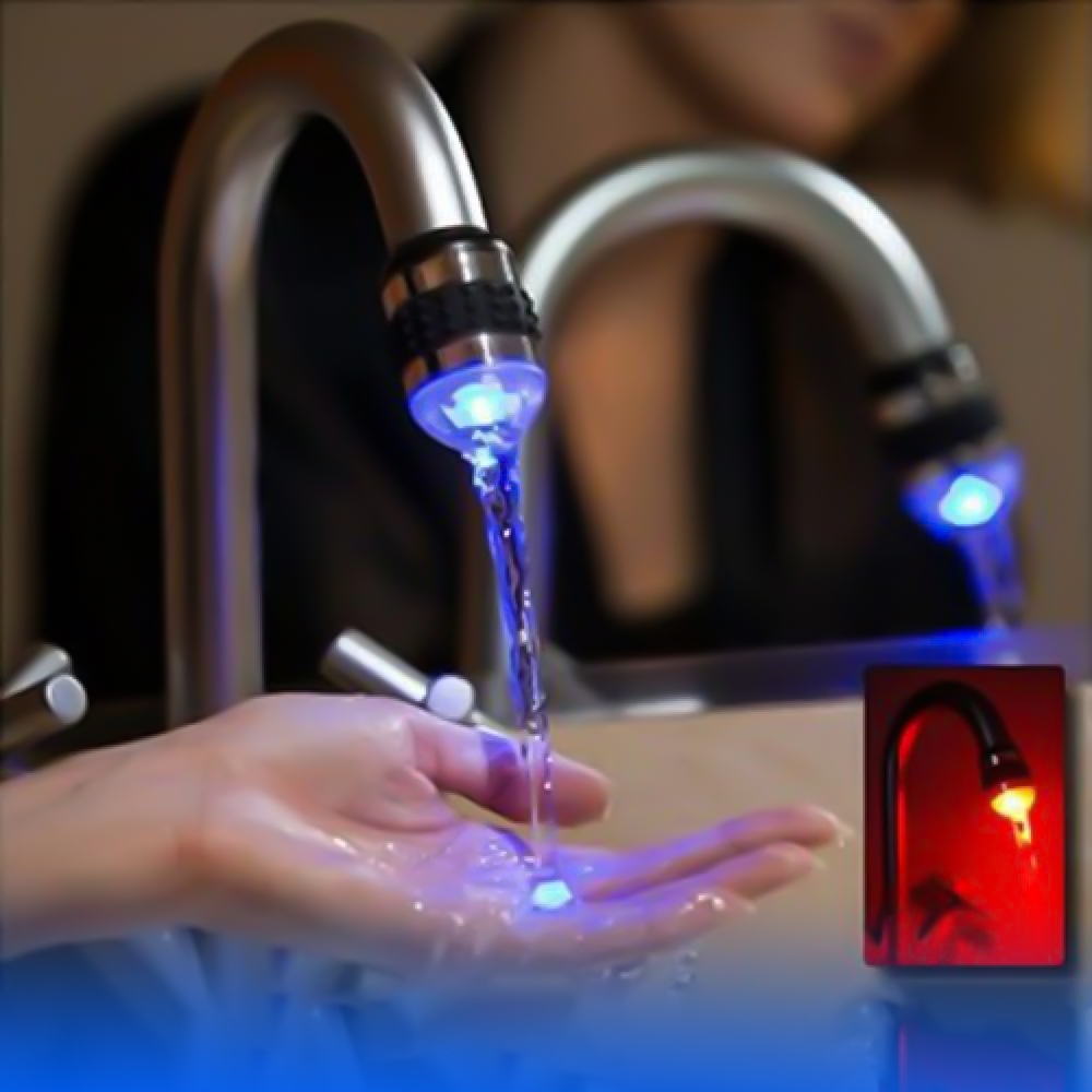 من النهارده مش هتتلسع من المياه السخنة لما تفتح الحنفية، فلتر حنفية مضيء على حسب درجة حرارة المياه.