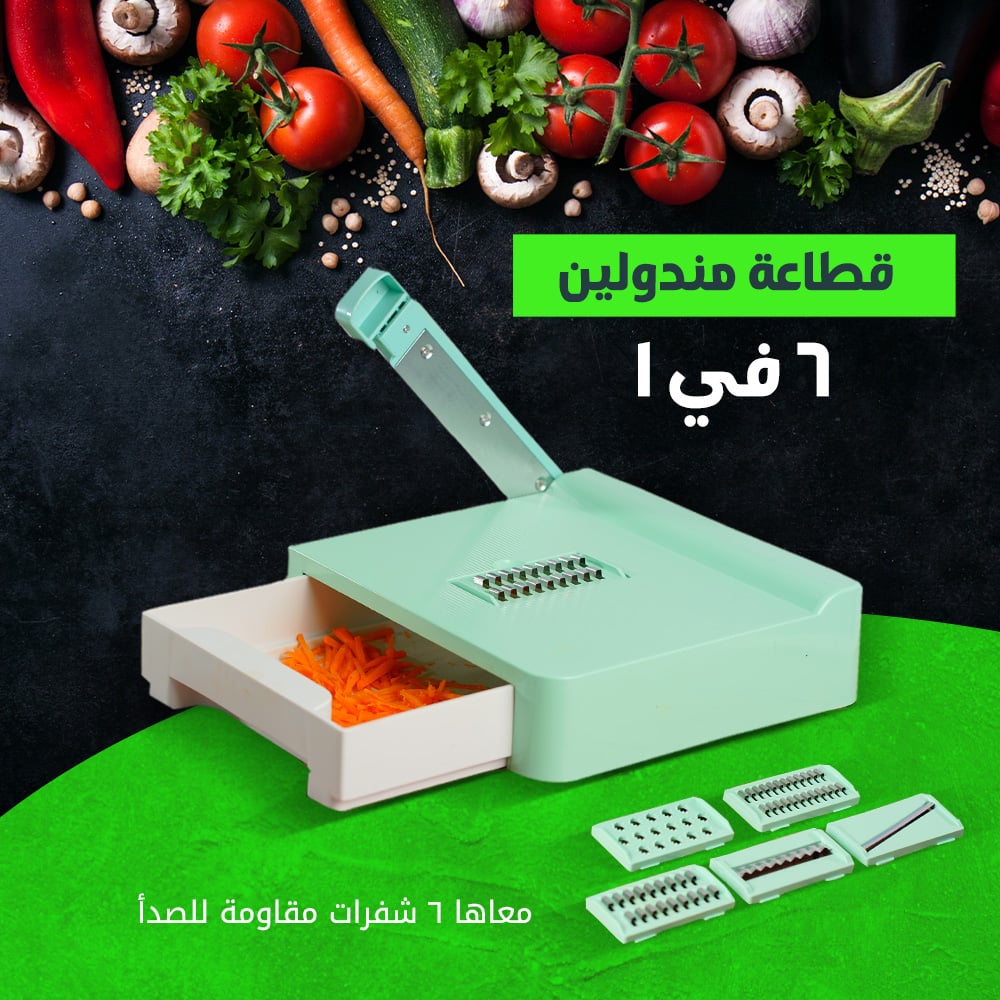 🥒✨ قطّاعة مندولين 6 في 1 – سلطتك أحلى وأسهل في ثواني!