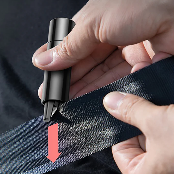 • كمان فيها قاطع عشان لو عايز تقطع حزام الأمان بسهولة وفي أسرع وقت.