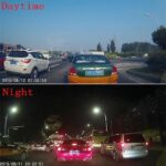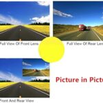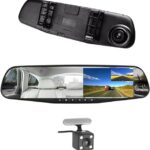 • الكاميرا الأولى متصلة بالمرآة للرؤية الأمامية وكاميرا أخرى يمكنك تثبيتها في الجزء الخلفي من سيارتك للرؤية الأمامية.