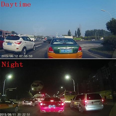 • يحتوي جهاز DVR للسيارة على كاميرتين تسمحان بتسجيل مقاطع الفيديو من زاويتين مختلفتين.