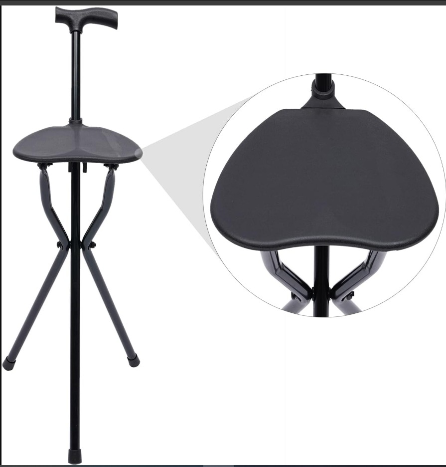 • مقعد: يوفر مكانًا للجلوس والراحة أثناء استخدام العصا للدعم.