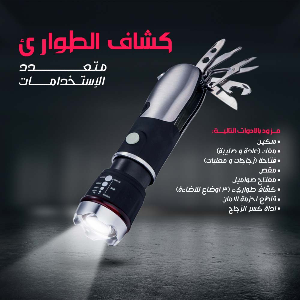 • كشاف 8*1( كشاف، سكينة، مقص، مفك، فتاحة، شاكوش امان،مفك صواميل* سكينة حزام)