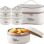 العلب الداخلية مصنوعة من Stainless Steel مقاوم للصدأ يحافظ على حرارة الطعام الساخن أو البارد لساعات طويلة، بدون روائح أو طعم معدني. مثالي للاستخدام اليومي في المدرسة أو الشغل أو الرحلات.