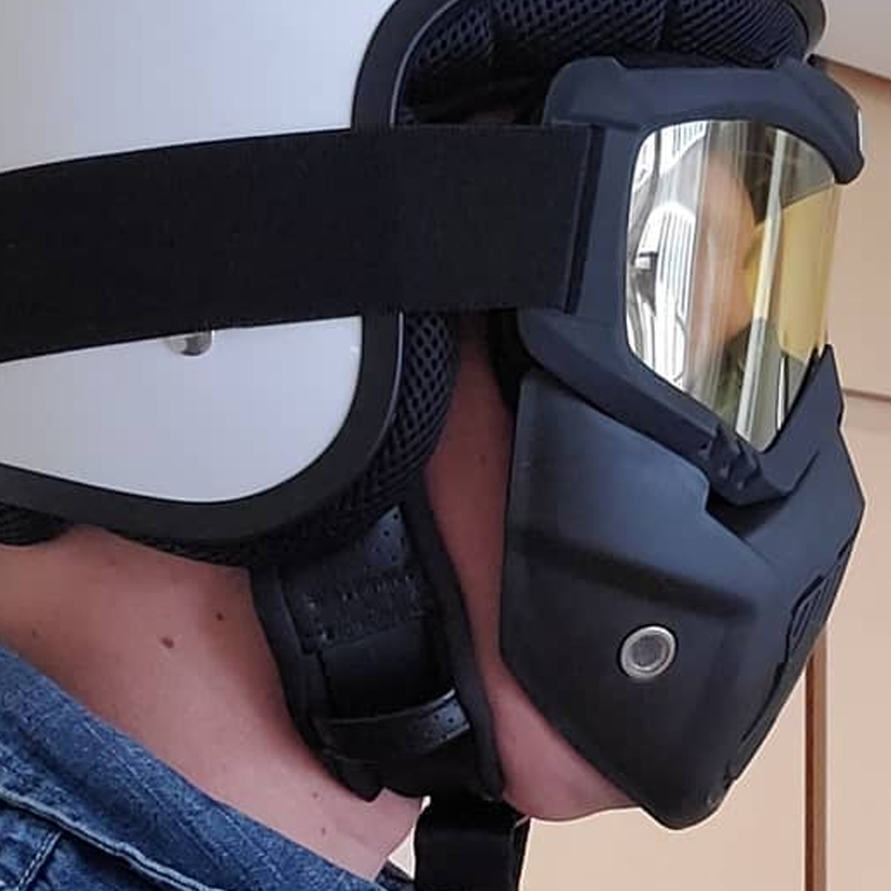 بتحب تركب الدراجات النارية وماتقدرش تستغني عنه بس المشكلة في التراب و الهوا اللي بيدخل في العين، دلوقت مع ماسك قناع الوجه هتحمي عينك وتحافظ علي نفسك