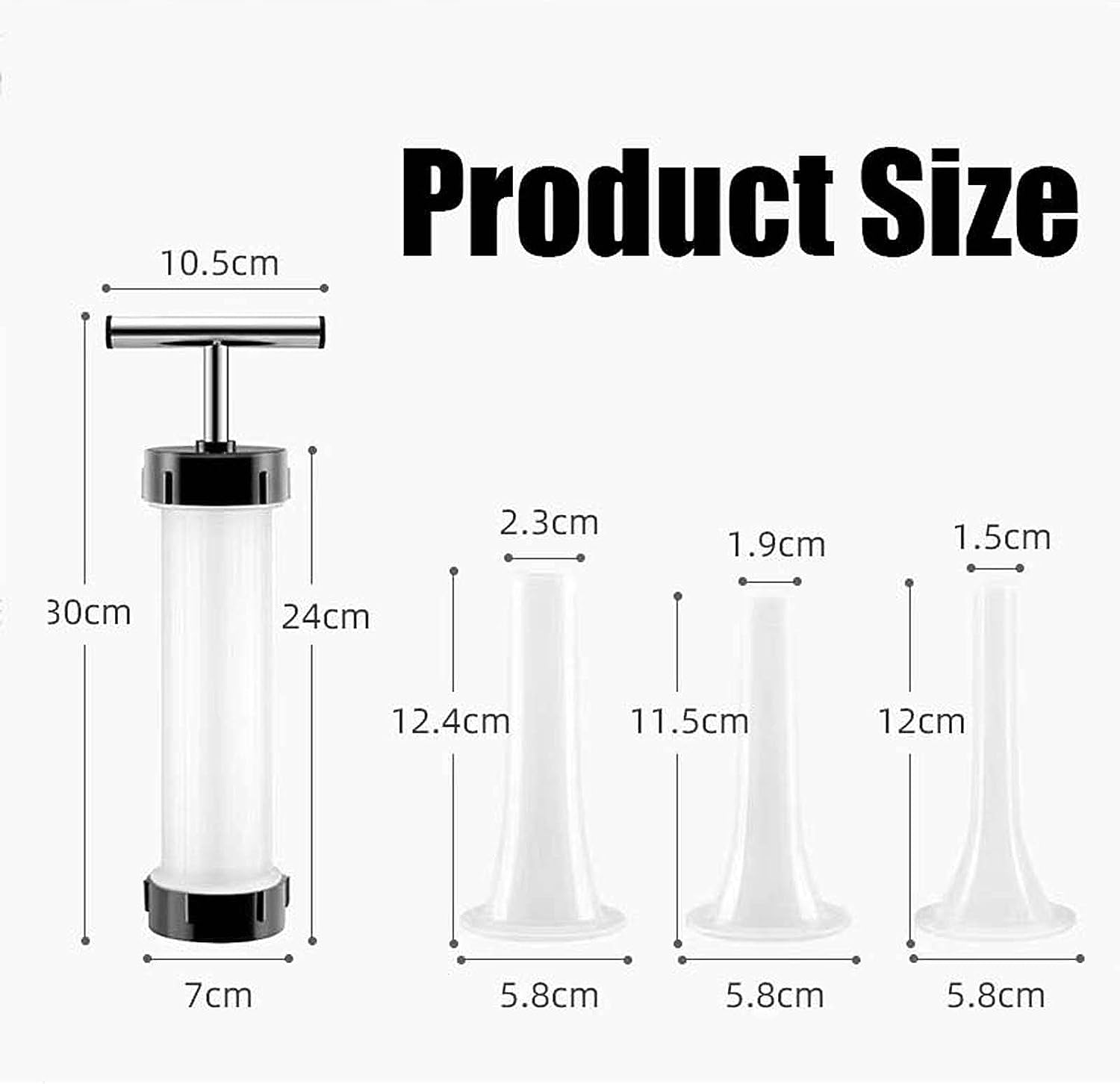 • قطر فتحة الفوهة: حوالي 2.3 سم /1.9 سم / 1.5 سم.