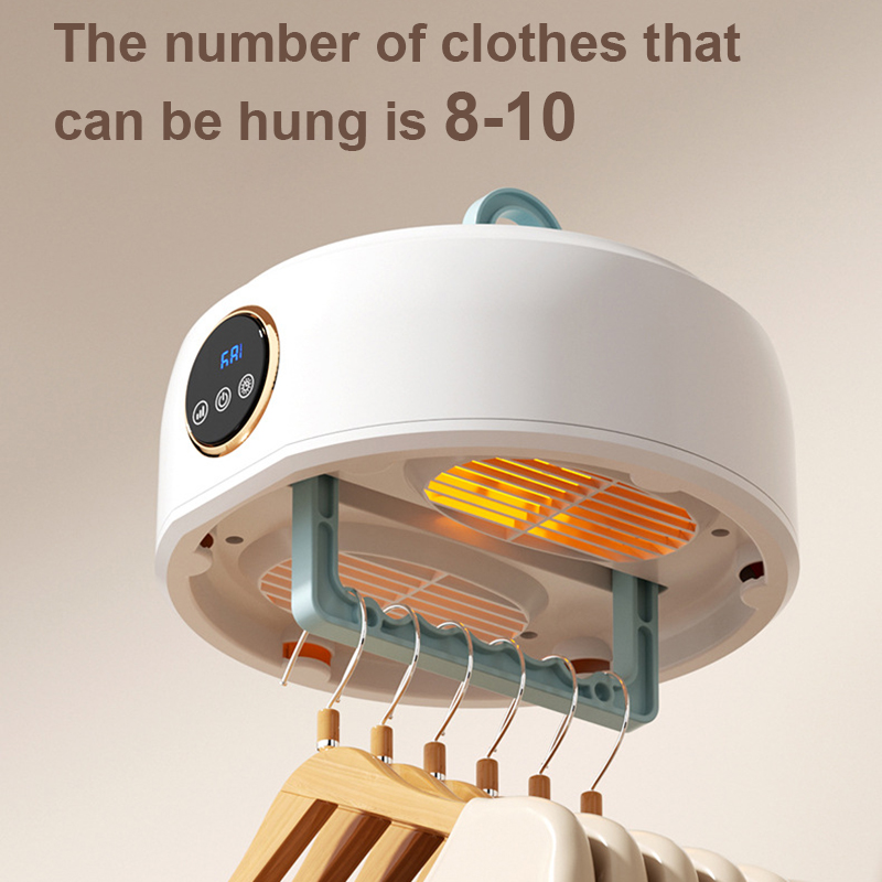 • مزود بعنصر تسخين PTC ونظام توزيع الهواء الساخن بزاوية 360 درجة، اللي بيضمن تجفيف الملابس بسرعة وكفاءة من كل الزوايا، وبيتركها خالية من الرطوبة.