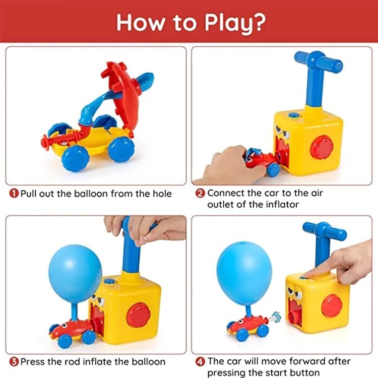 كل اللي عليك إنك تركب البالونة على العربية، تنفخها بالمضخة، تضغط على زر الإطلاق… والعربية تطير لقدام بقوة الهواء!