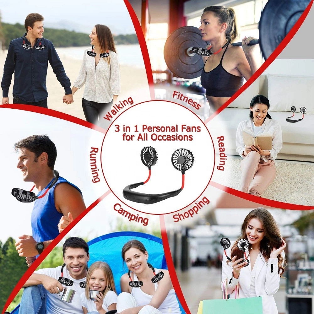 عملية جداً بتتثبت حوالين الرقبة وبعد الشحن بتشتغل بشكل وايرلس من ساعتين لـ 8 ساعات، فيها زرار للتحكم في الإضاءة و زرار تاني للتحكم في السرعات. عيش الصيف ومغامراته واستمتع بكل أوقاته