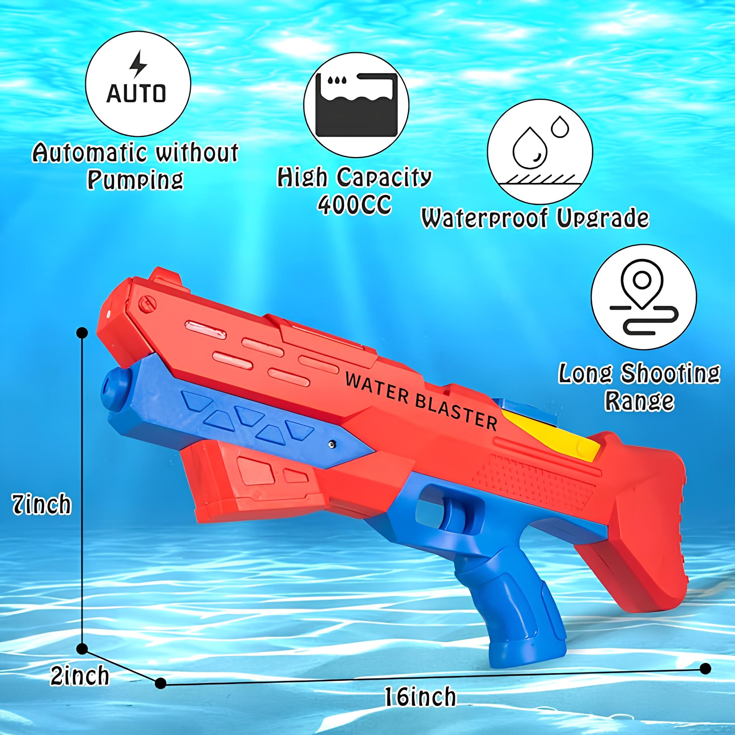 • خزان ماء بسعة 400 مللي لتر: يوفر هذا إمدادًا وفيرًا بالماء لمعارك الماء الطويلة، مما يلغي الحاجة إلى إعادة الملء المتكررة.