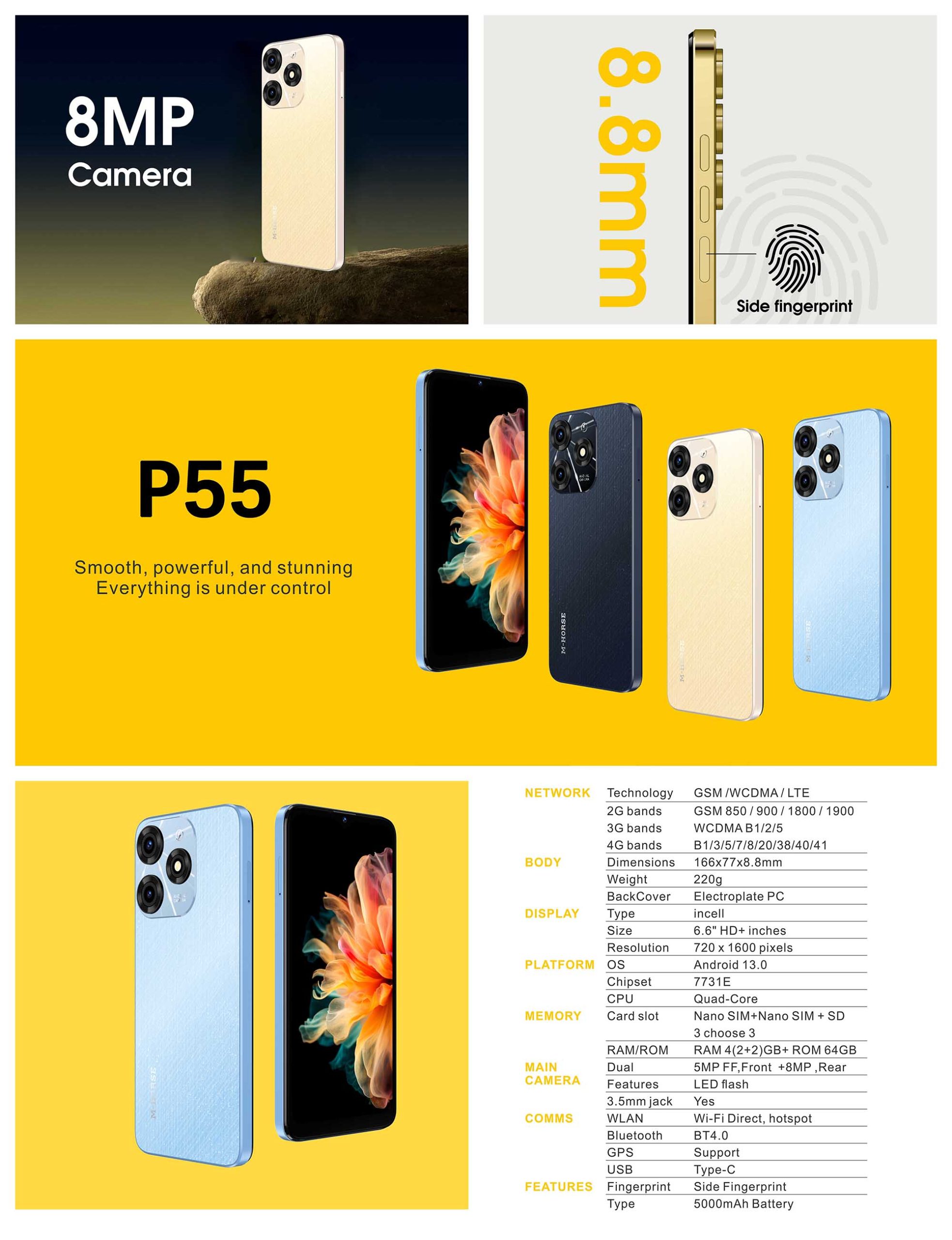 موبايل ام هورس P55 🔥 أداء جامد وبطارية تعيش معاك اليوم كله 🔋 شاشة كبيرة، وكاميرا واضحة، وسعر على قد الإيد 📱💸
