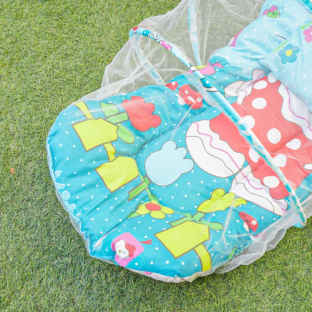 • 1- السرير مزود بناموسية عشان يحمي طفلك من الناموس والحشرات المزعجة ويخليه ينام في أمان