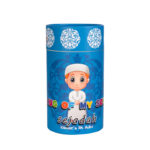 بوكس باللون الأزرق المبهج، فيه سجادة صلاة مخصوصة للأولاد بتصميم طفل لطيف يشجع ابنك يحبّ الصلاة من قلبه.