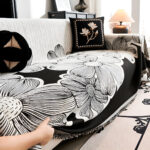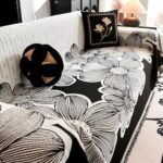 جددي ديكورك بخطوة بسيطة! مفرش صيفي مشجر أسود أنيق بخامة شانيليا ناعمة يغير شكل القعدة ويضيف جو دافي ومميز 🌿🤍