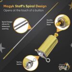 مجرد ضغطة وحدة، العصا راح تفتح بلحظة وحدة وبحركة مفاجئة، وهذا اللي يخليها مثالية لعروض الخدع البصرية.