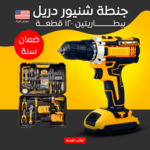 🔧 جنطة شنيور ودريل ببطاريتين و120 قطعة كاملة! 💪 ضمان سنة كاملة يخليك تشتغل وانت مرتاح البال. 🎯