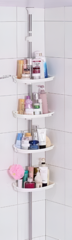 : “زاوية الحمام الأربعة الأدوار: الحل الأمثل لتنظيم أدوات الحمام وتوفير مساحة كبيرة! هتجعل حمامك شكله مرتب وأنيق.” . سارعِ بالطلب هسه!”