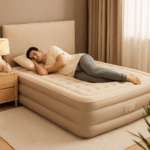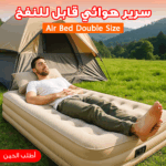 نام راحة فخمة وين ما كنت! 💤 سرير هوائي يرتفع 40 سم بسطح مخملي ناعم ومضخة مدمجة تنفخه وتفرّغه بدقايق—مثالي للبيت، للضيوف، للتخييم والرحلات. ⛺️
