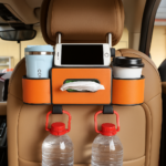 النوع: منظّم ظهر مقعد السيارة مع حامل أكواب + صندوق مناديل + خطّافات.